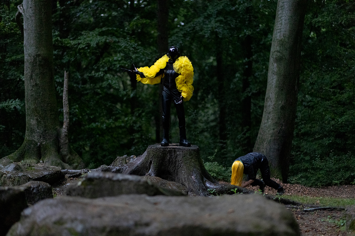 In diesem Rahmen produzierten sie die Videoserie SCHATTENBLICK (2022) und die performative Exkursion SCHÖNHEIT (2023), für die sie zuletzt durch die Tiny Adaption Förderung des Landes NRW in Kooperation mit dem Hangar21 Detmold eine flexible Adaption erarbeitet haben.