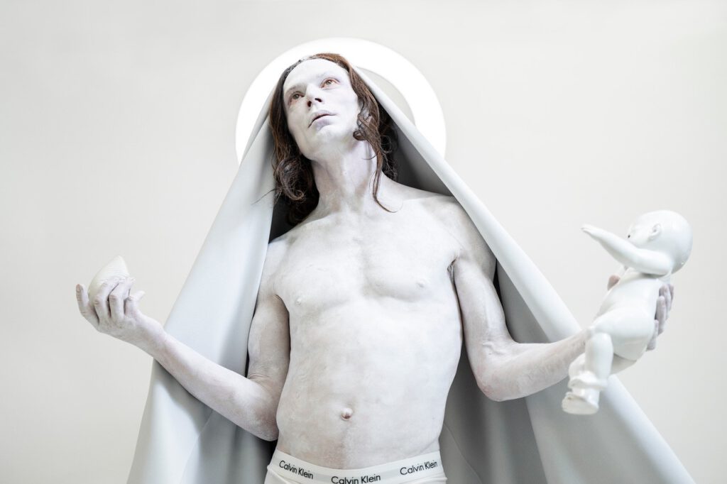In HOLY SHIT – A Human Experience lädt Choreograf Ben J. Riepe in einen besonderen Bühnenraum zwischen Kathedrale, Lounge und künstlichem Horizont ein– einen Raum, in dem das Publikum nicht nur zum Zuschauen gebeten ist, sondern auch, um Teil einer gemeinsamen Erfahrung zu werden, die körperliche Präsenz und Bereitschaft erfordert. Ausgehend von der Figur eines*r Seher*in – zugleich menschlich und übermenschlich, verletzlich und autoritär – entfaltet sich in HOLY SHIT eine Performance-Session zwischen Dystopie und Utopie, Zerstörung und Verheißung. Aus Text und Musik, Sound- und Lichtlandschaften, die unser Nervensystem beeinflussen, aus KI-generierten Videowelten und Live-Bildern, entsteht ein körperlich erfahrener Übergang: ein Abend, der fragt, wie Verbundenheit heute noch möglich ist– jenseits von Ironie, Spiritual Bypassing und distanzierter Beobachtung. HOLY SHIT ist kein Wellness-Ritual und kein konsumierbares Gemeinschaftsgefühl, sondern ein Vorschlag für eine neue Erfahrung zwischen Schönheit und Zumutung, zwischen Theatererlebnis und angeleiteter Session, die auf alle Sinne wirkt und uns verändert in die Nacht entlässt.